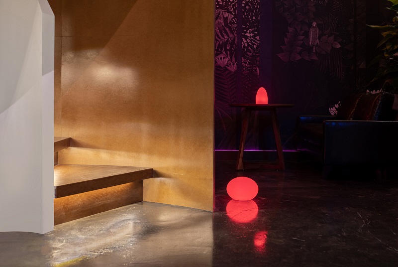 設計技巧:運用豐富的視覺感官創造動靜相宜的酒吧空間,以吧臺為核心和原點,刻意抬高的組合設計將空間分割成不同的功能區域。利用原建筑層高的優勢,通過具有雕塑感的雙螺旋樓梯作為上下連接紐帶,在吧臺上方設置了私密夾層。